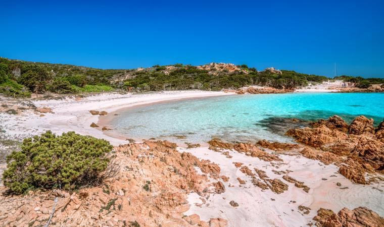 Die Spiaggia Rosa auf der Insel Budelli ist das Wahrzeichen des La-Maddalena-Archipels: Glasklares Wasser umspült einen Strand mit feinstem, rosafarbenem Sand. Die besondere Färbung der Sandkörner entsteht durch winzige Fragmente von Korallen und Muscheln, die vom Meer angespült werden. Leider ist dieser berühmte Strand heute für Besucher gesperrt und kann nur aus der Ferne bei einer Bootstour durch den Nationalpark La Maddalena bewundert werden. Diese Maßnahme war notwendig, um die empfindlichen Mikroorganismen zu schützen, die dem Sand seine charakteristische rosa Farbe verleihen.