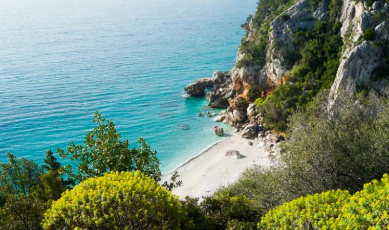 Eine weitere atemberaubende Bucht im Golf von Orosei ist Cala Goloritzé, die zwischen Baunei und Santa Maria Navarrese liegt. Wer unberührte Natur liebt, wird diesen Ort besonders genießen: Der Strand besteht aus kleinen, weißen Kieselsteinen, und aus dem leuchtend blauen Wasser ragen imposante Felsen und kleine Inseln heraus. Obwohl Cala Goloritzé noch schwerer zu erreichen ist als Cala Luna, ist sie längst kein Geheimtipp mehr – zum Schutz der Natur wurde der Zugang sogar reguliert. Doch der lange Wanderweg und die Eintrittsgebühr sind es wert: Wer einmal sein Handtuch in dieser paradiesischen Kulisse ausbreitet, wird es nicht bereuen.
