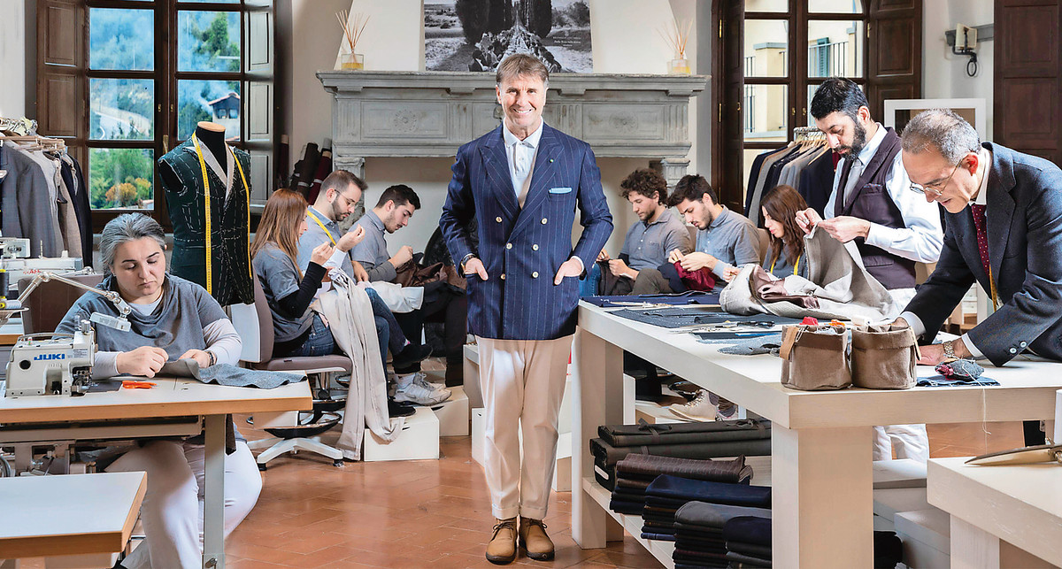 Aus dem umbrischen Dorf Solomeo schuf Cucinelli ein leises Luxus-Universum mit perfekt verarbeiteten Neutraltönen; berühmt für seine „humanistische“ Unternehmensphilosophie.